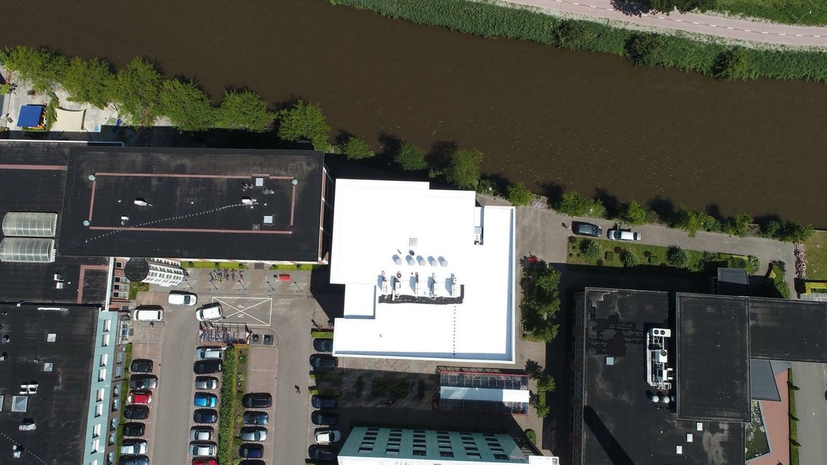 Met de aanhoudende warmte van de laatste tijd lopen veel koelinstallaties op gebouwen tegen hun maximum capaciteit aan. Dat zal de komende jaren alleen nog maar erger worden. Volgens het KNMI zal het aantal warme dagen (boven de 25ºC) de komende jaren nog bijna gaan verdubbelen. Daarom hebben wij de firma SecLife opdracht gegeven om de daken aan de Friesestraatweg te behandelen met PU84 witte dakcoating. Weer 15 jaar waterdicht, maar misschien nog wel belangrijker was het koelende effect.